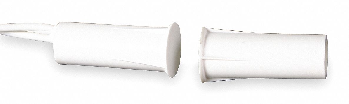 Door contact recessed 30 volt ac dc 0 25 ampere 3 watt 3 8 gap 3 4 diameter spdt steel white with wire lead mfr part 1076c n part 235956.