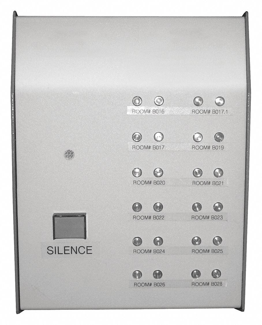 It can alert staff via audible alarm visible light staff indicator panel and via the pager or main computer.